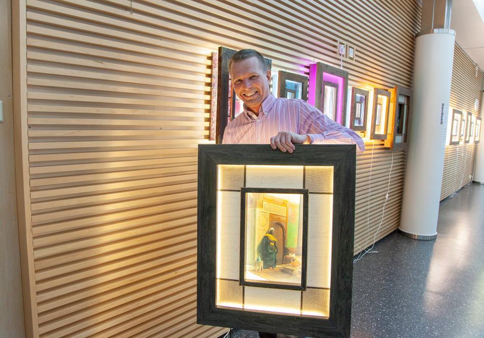 Taitotalon Strömberginkujan kampuksen valoaulassa oli esillä Olli Timosen valotaideteoksia syyskuussa.